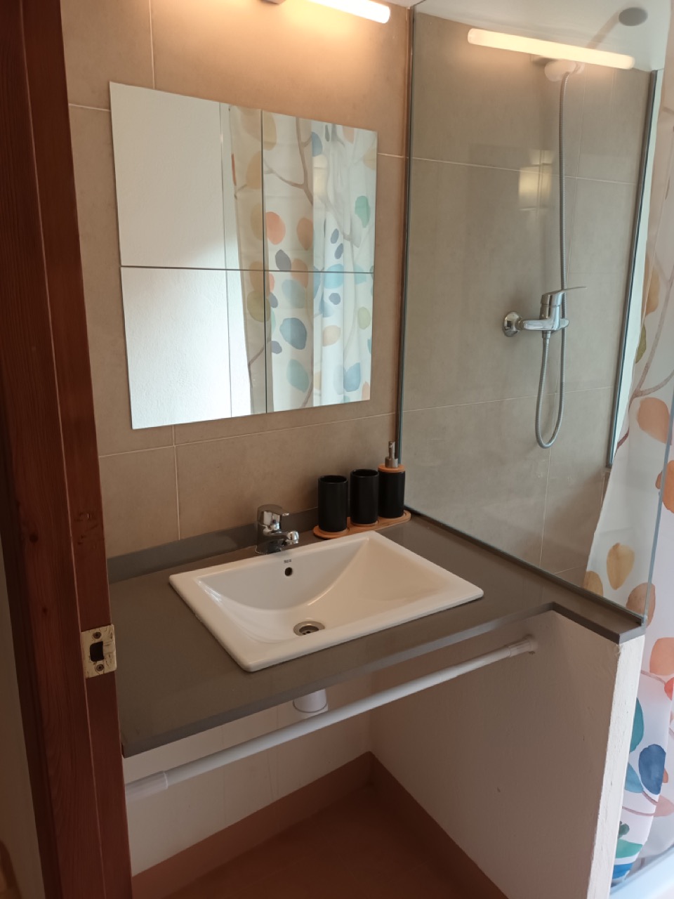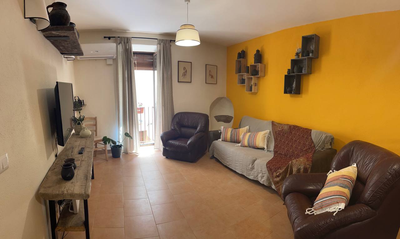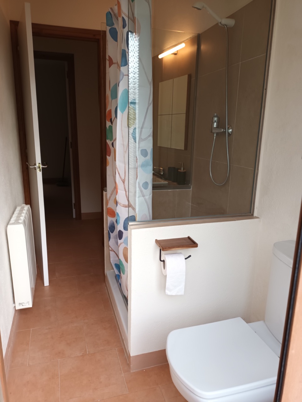 En el primer piso, encontramos un baño con ducha, una habitación y un amplio salón comedor con cocina abierta equipada con todo lo necesario (ver listado de existencias).